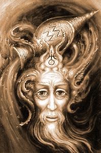 Hermes Trismegistos ist die griechische Bezeichnung des ägyptischen Gottes der Weisheit Thot dem legendären Schöpfer der Alchemie. Von ihm soll die "Tabula Smaragdina" stammen auf der die sieben Lehrsätze geschrieben stehen.